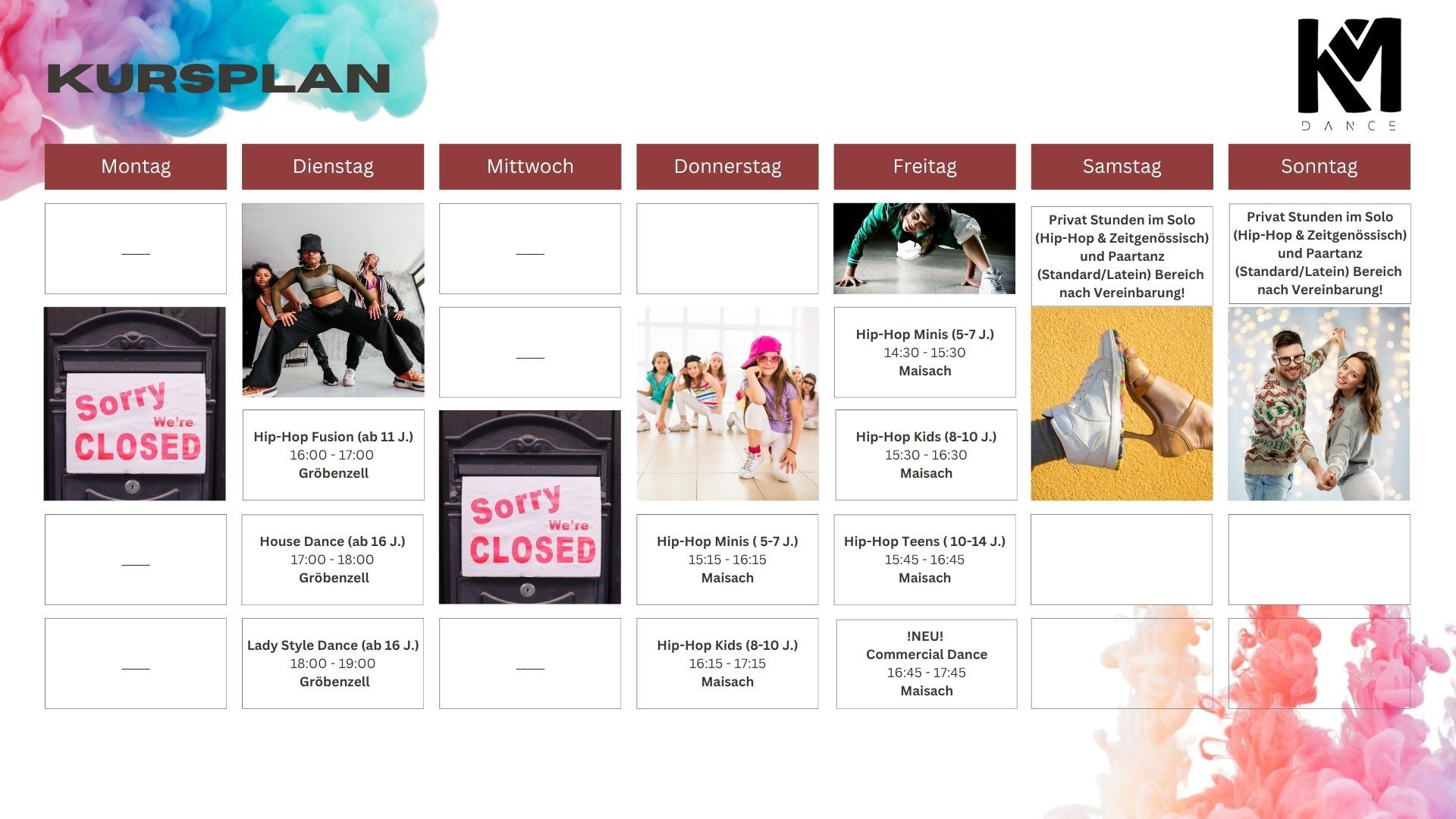 DER STUNDENPLAN UNSERER TANZANGEBOTE